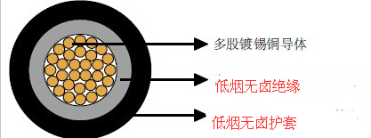 護套: 電子束交聯,低煙無鹵阻燃復合物, 黑色