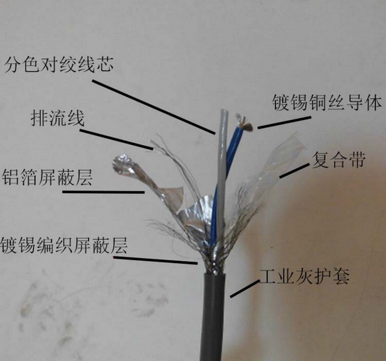 屏蔽: 鋁塑復合帶 (厚度60μm,其中鋁層厚度≥10μm) 縱包+90%鍍錫銅絲編織